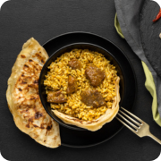 Fragrant basmati rice slow-cooked with tender mutton, saffron, and spices.